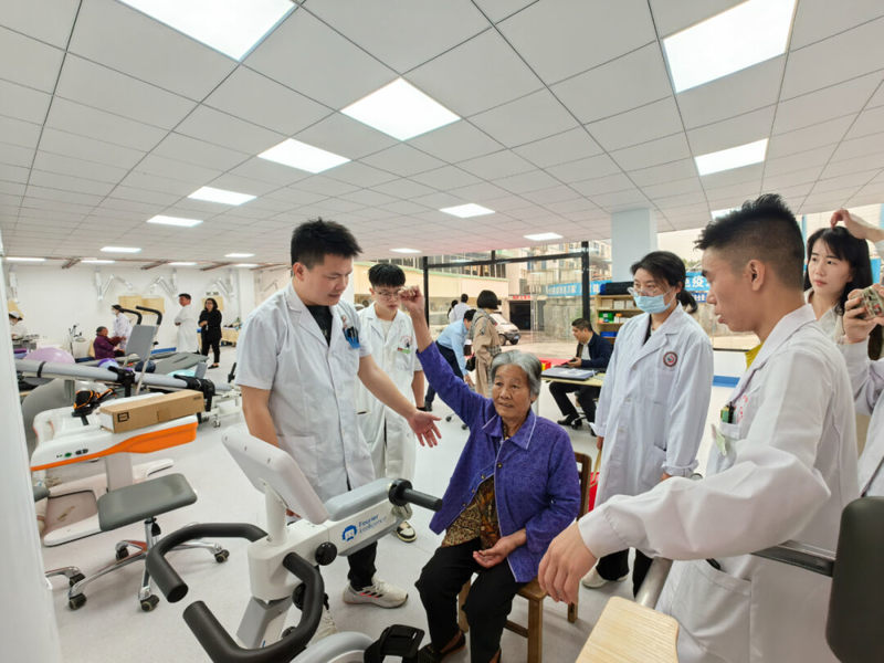 当日正值四塘镇卫生院康复大厅试运行,党委副书记黎昇到场祝贺,康复医学科主任罗德康、护士长麻绍芬、康复治疗师陈晶对康复科建设进行指导。