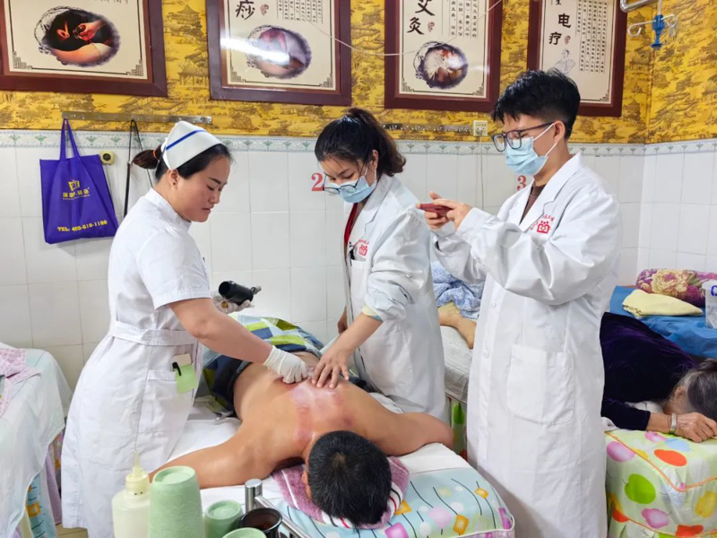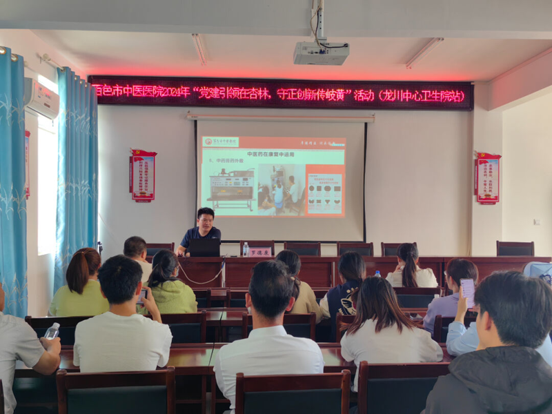 座谈会后,华树良院长对卫生院整体发展建设进行指导;医务部、骨伤科主任吴显兴、康复医学科主任罗德康分别开展《针刺运动疗法》《中医药及技术在康复科的应用》专题讲座,中医健康管理中心副主任护师罗青叶进行中壮医适宜技术“平衡罐疗法”“药线点灸疗法”培训。