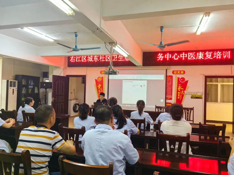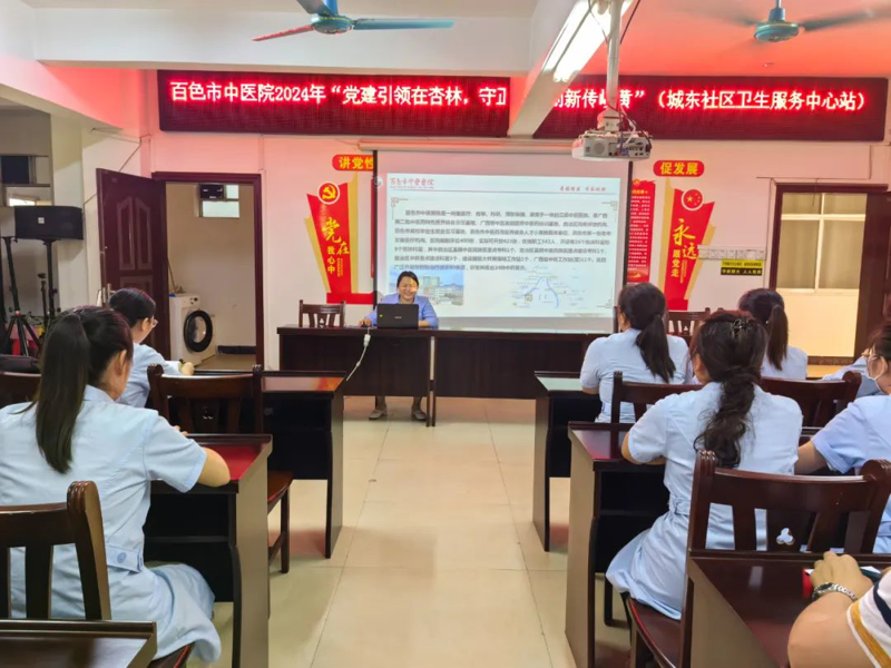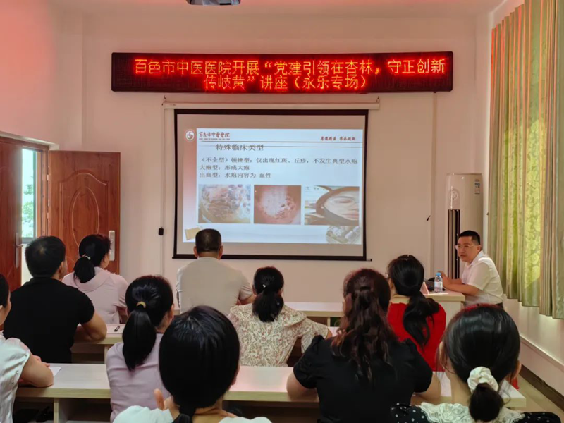 会后,赵建立同志对卫生院整体发展建设等内容进行指导,壮医学科主任陈鹏开展《培额(带状疱疹)壮医诊疗方案》专题讲座,中医经典病房护长罗凤想进行中壮医适宜技术“腕踝针疗法”培训。