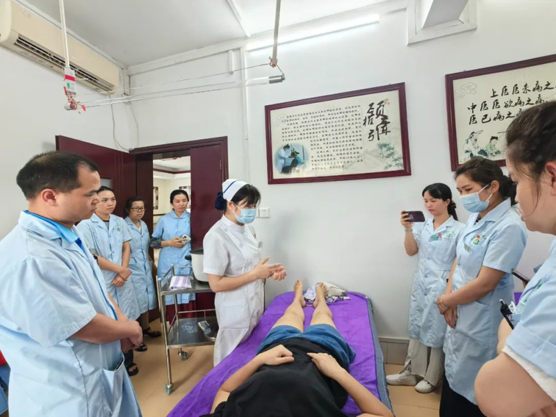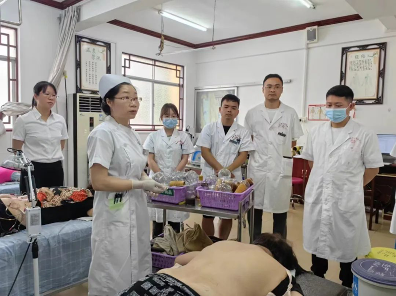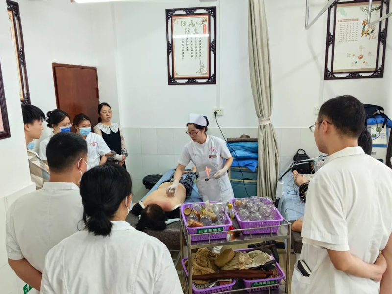 会后,文晓涛同志到中医馆开展业务交流和指导,治未病科副主任护师罗青叶开展中医适宜技术“平衡罐疗法”“火龙罐疗法”培训,壮医学科护长何凤心开展壮医适宜技术“竹药罐疗法”培训。