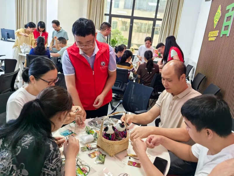 佩戴香囊既是一种习俗,蕴含着祈福纳祥的美好愿望,又是一种预防、治疗疾病的方法。小讲座结束后,大家热情高涨,在志愿者的指导下纷纷动起手,用艾叶、菖蒲等中药材和丝绸、棉线等材料,精心制作出一个个色彩鲜艳的中药香囊,体验优秀传统文化和中医药文化的独特魅力。