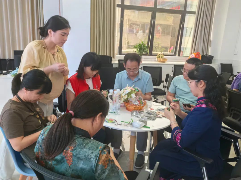 活动的最后,大家围坐一起包粽子,一边交流分享包粽子的经验,一边话家常忆民俗,整个活动现场弥漫着粽叶香,欢声笑语不断。