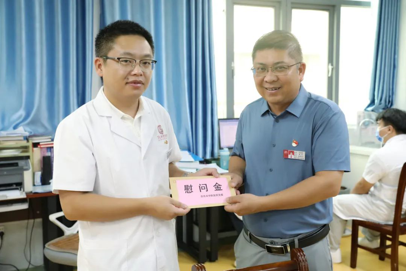 7月1日,医院领导班子对获得党内表彰的党员、生活困难党员、老党员等人员进行走访慰问,为他们送上慰问金以及节日的祝福。在交谈中,院领导们仔细询问慰问人员的健康状况和生活状况,感谢他们为医院付出的努力,并希望他们能够一如既往地支持医院工作,为推动医院高质量发展贡献力量、出谋划策。
