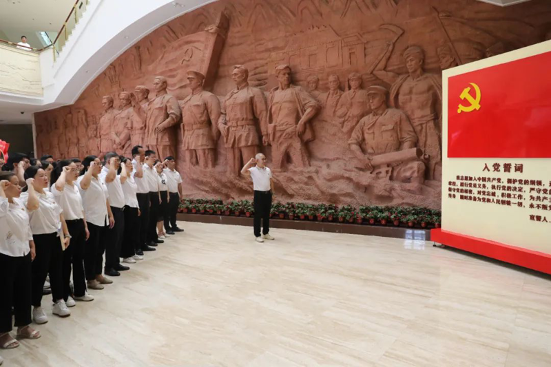 随后,在赵建立副书记的带领下,全体党员同志面朝党旗庄严宣誓,铿锵有力的誓言表明了对党组织的忠诚和拥戴,也彰显了自己坚定的立场和不变的理想信念。